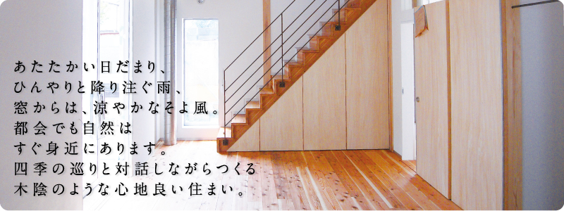 雨デモ風デモハウスでは、建物と外部の環境を一体としてデザインします。 そうでないと、自然の力をじゅうぶんに引き出せず、建築上の工夫も上手く活かされないのです。