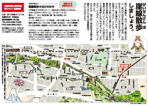 - 「国分寺崖線をつなぐ会」と連携した、中央線の南側を東西に伸びる国分寺崖線のまち歩き、マップづくり